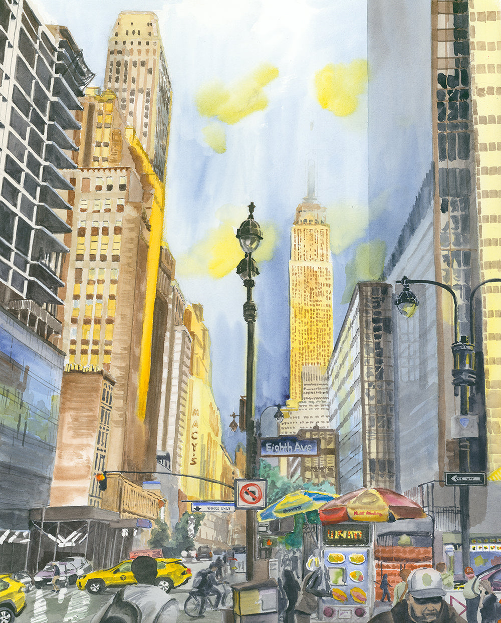 I'm a long-time Manhattan resident specializing in watercolor cityscapes and I love to capture the beauty of everyday subjects that might often go overlooked.