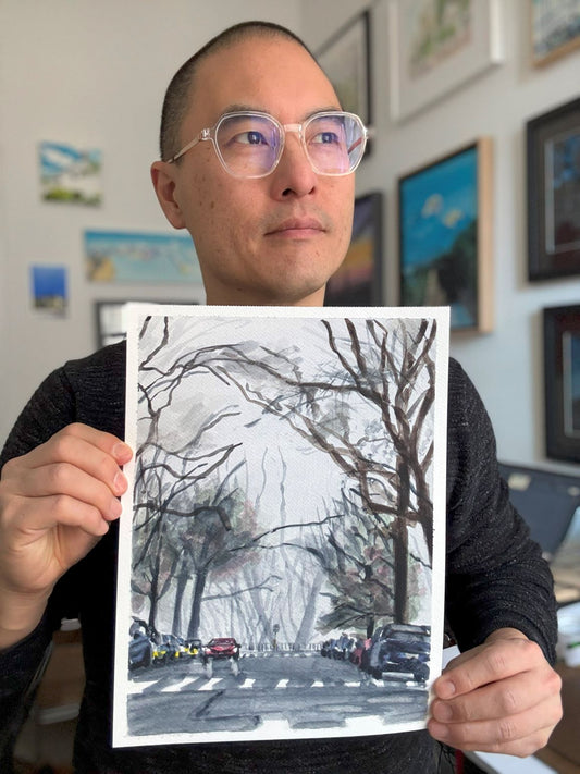 The Fog Is Here, 190th Street, NYC, watercolor painting