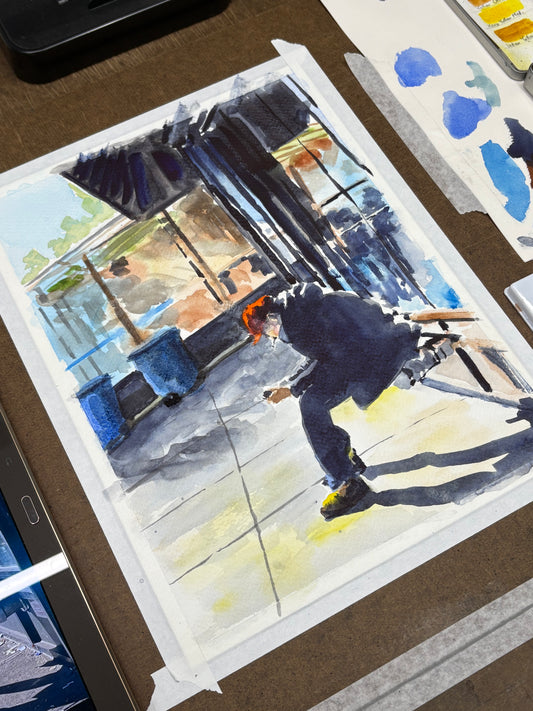 Uptown or Downtown, Subway Painting, Watercolor, Plein Air