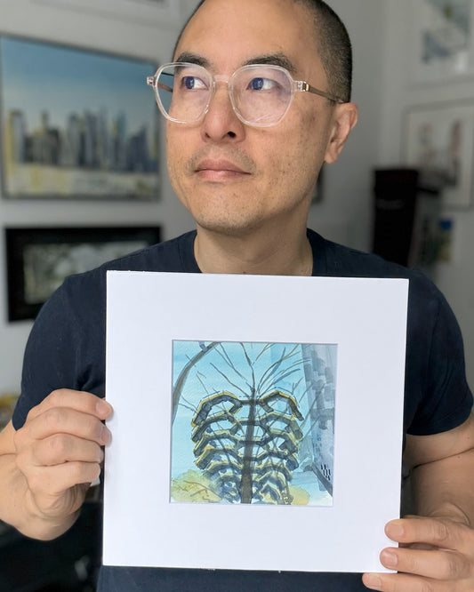 Hudson Yards In Fall, Vessel, NYC, watercolor painting