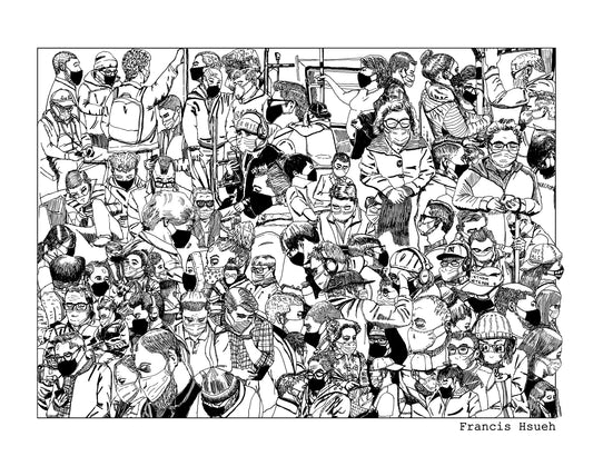 Subway Riders, Masked & Unmasked Option, Black and White Print