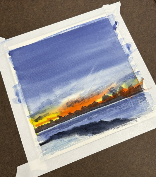 Sunset at the Cove, Grand Cayman, Seven Mile Beach, Watercolor
