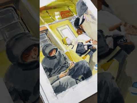 Five Guys (On the A Train), Subway Car, Watercolor Print