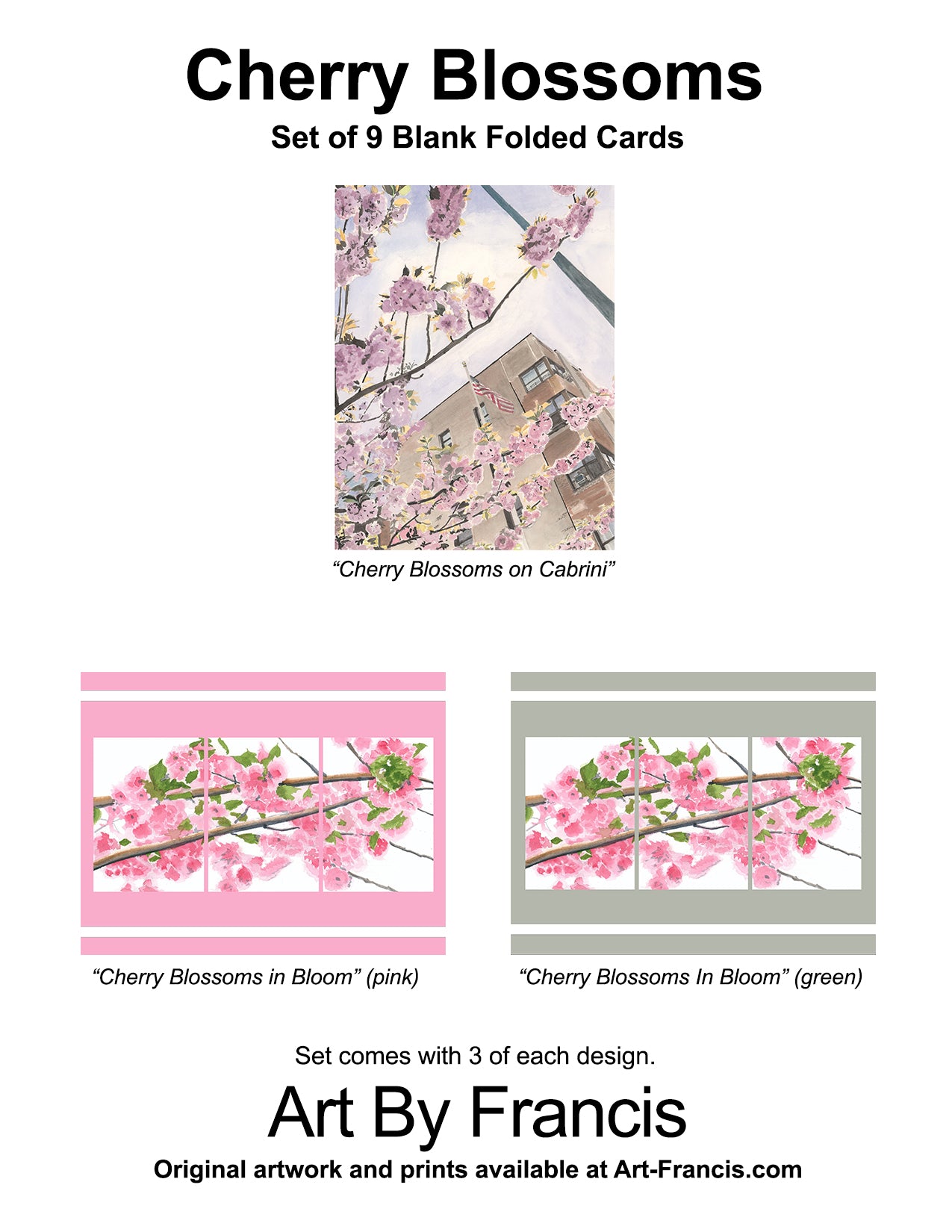 - Cherry Blossoms in Bloom (On green and pink backgrounds)